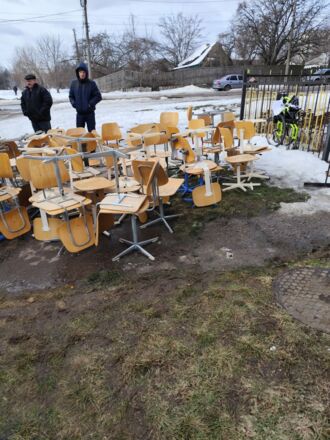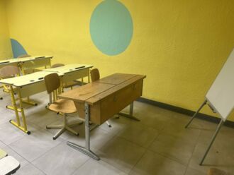 Angekommen in Tschernihiv wurden die Hilfsgüter nach Möglichkeit direkt verteilt. Die Schulmöbel haben ihren Platz im Schutzraum eines Lyzeums gefunden. Das medizinische Material wurde an die Einrichtungen verteilt.